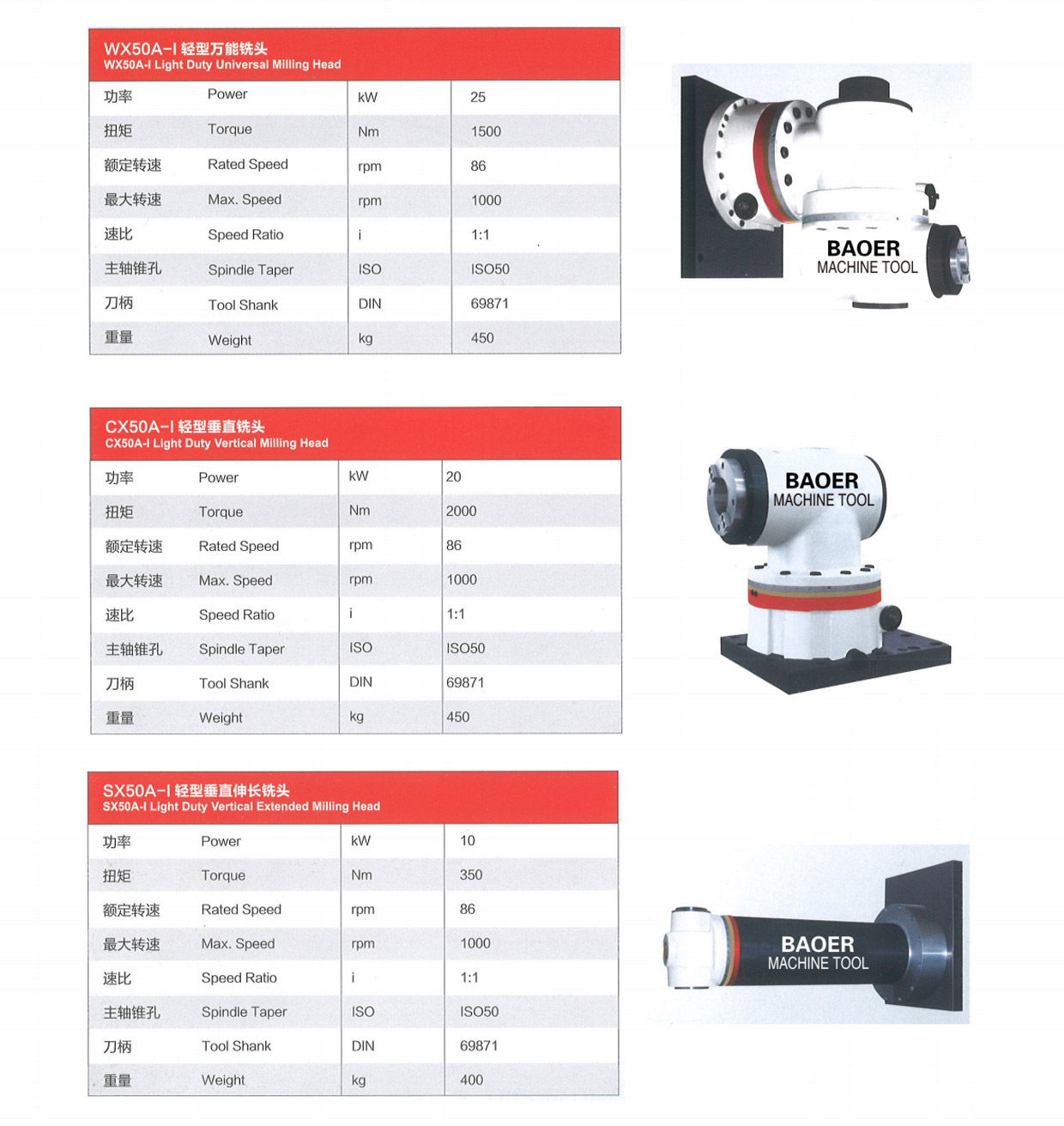 輕型銑(xi)頭:适用于(yu)直徑1 30mm以下(xià)主軸的各(ge)類機床