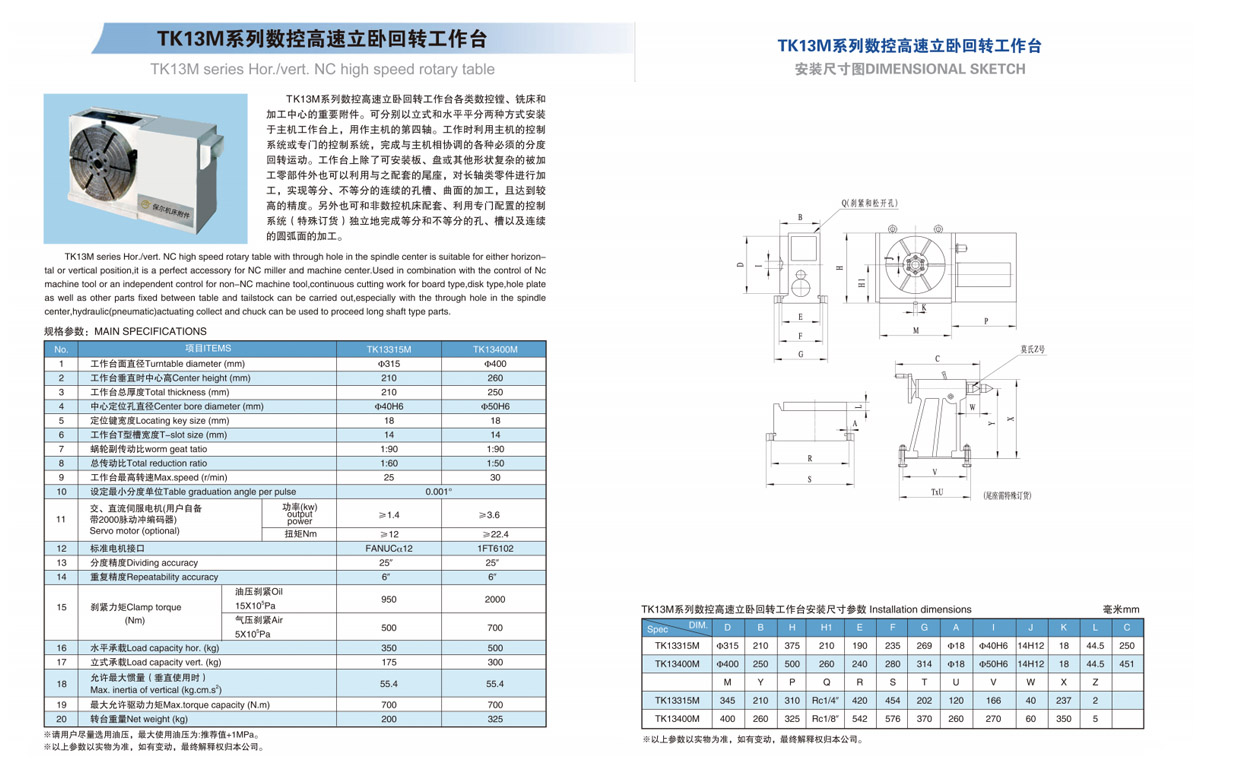 TK13M系列數控(kong)高速立卧回(hui)轉工作台